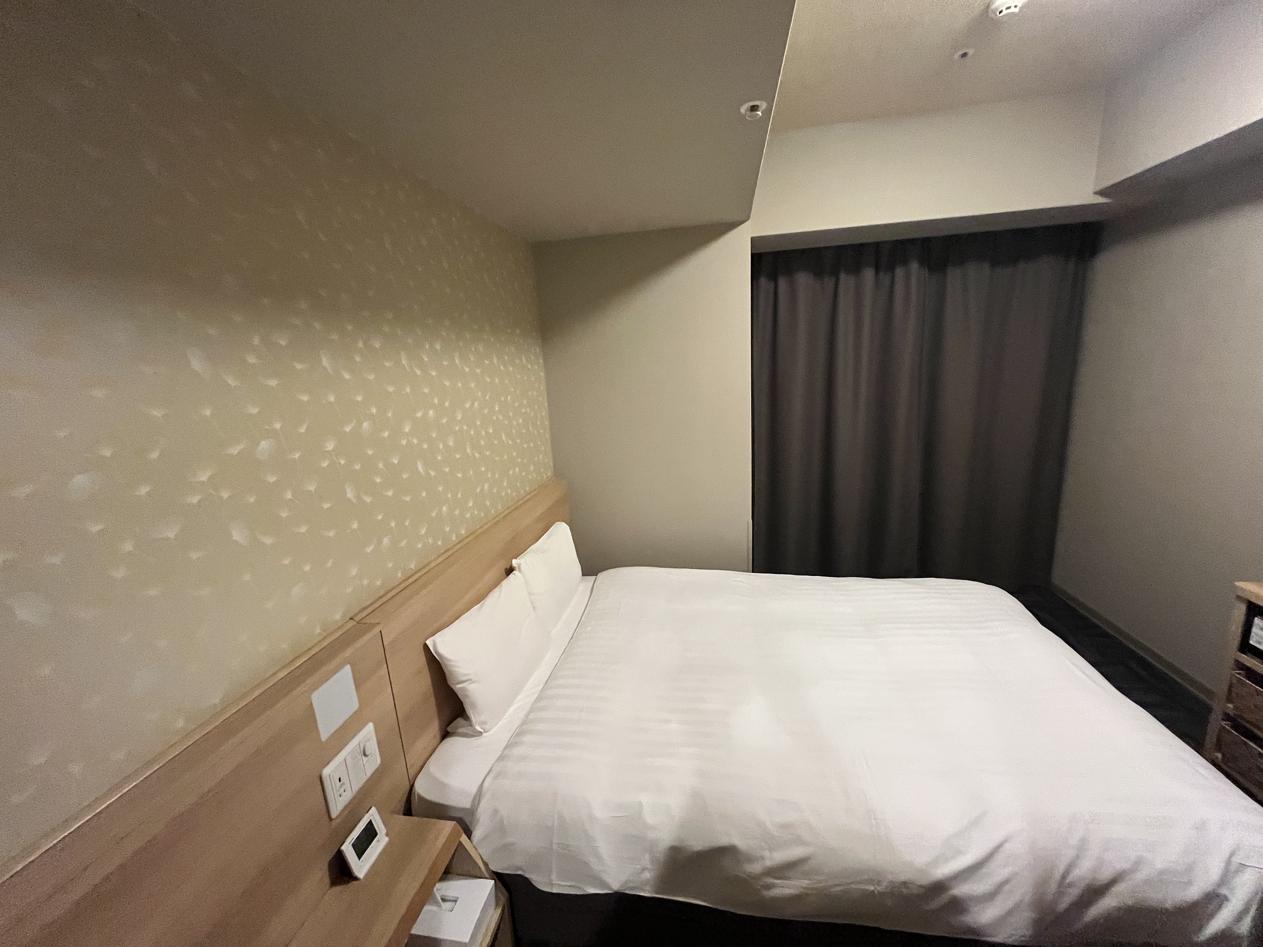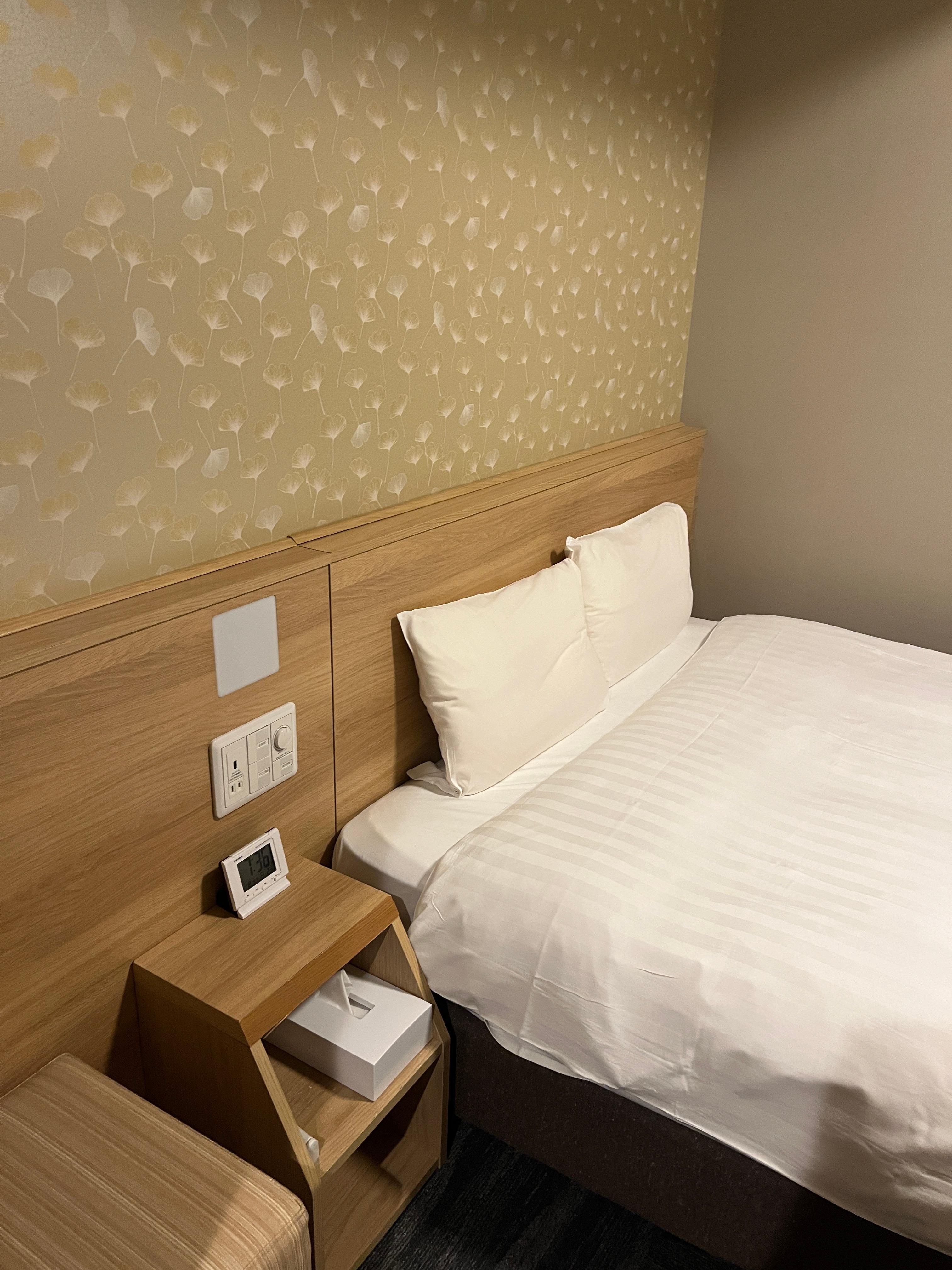 제가 묵은 방은 더블룸이었는데, 일본 호텔 치고 꽤 넓었어요. 침대는 푹신하면서도 탄탄해서 하루 종일 걸어 다닌 다리 피로가 싹 풀렸고, 베개도 두 가지 타입이라 취향대로 고를 수 있었어요.